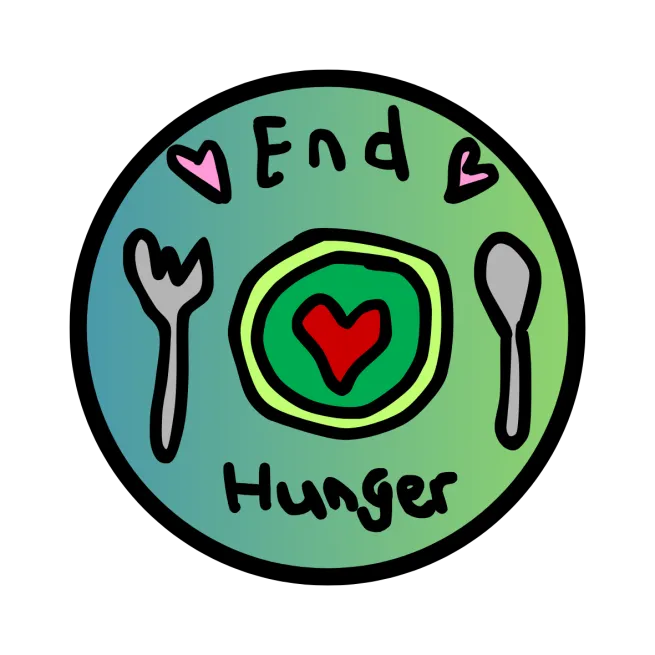 Darcy said: “When I was little I had a plate with a love heart on, so I took that idea and made it into a sticker and added a fork and a spoon. I just thought we should say ‘End Hunger’ as that is what foodbanks are about.”